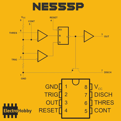 El integrado NE555P es un temporizador y un oscilador en el mismo circuito, el NE555 trabaja de uno u otro modo dependiendo de la configuración que apliquemos en sus entradas mediante las conexiones realizadas.