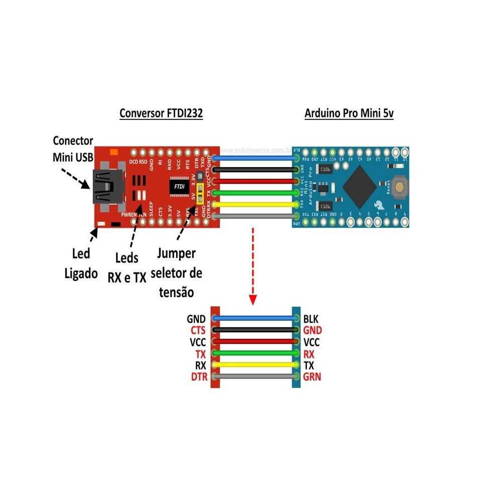 Conversor USB-Serie TTL basado en el controlador FT232RL de FTDI. Especial programador Arduino Pro Mini. Seleccion de voltaje 3,3 o 5Vdc mediante jumper.