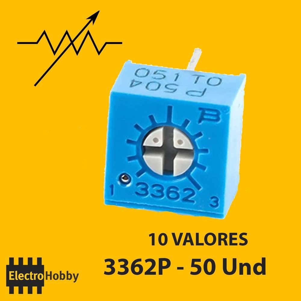 Kit 3362P Trimmer - Resistencia ajustable, fácil inserción en protoboard, ideal para entradas analógicas con Arduino.