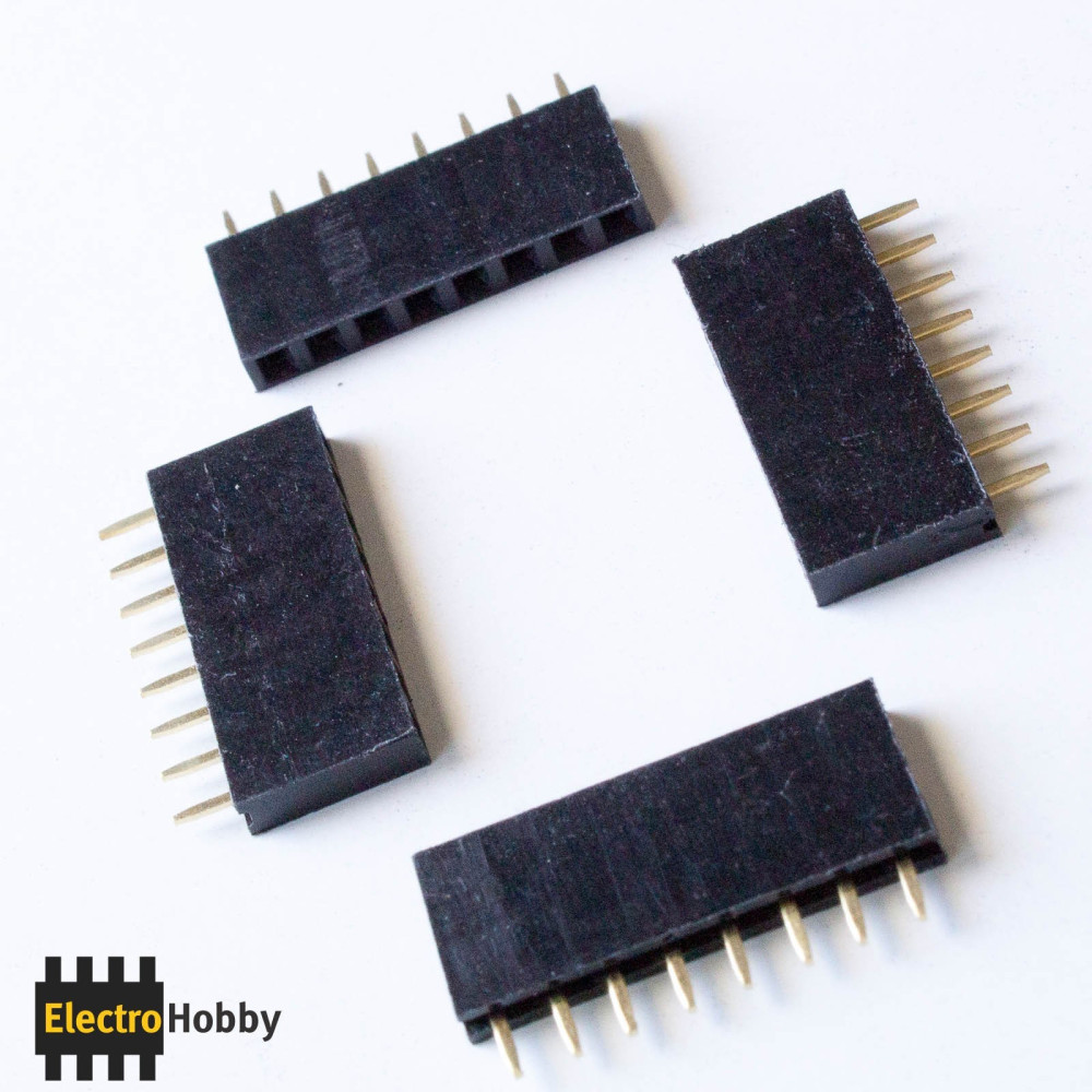 Tira de 8 pines hembra con separación estándar de 2,54 mm.