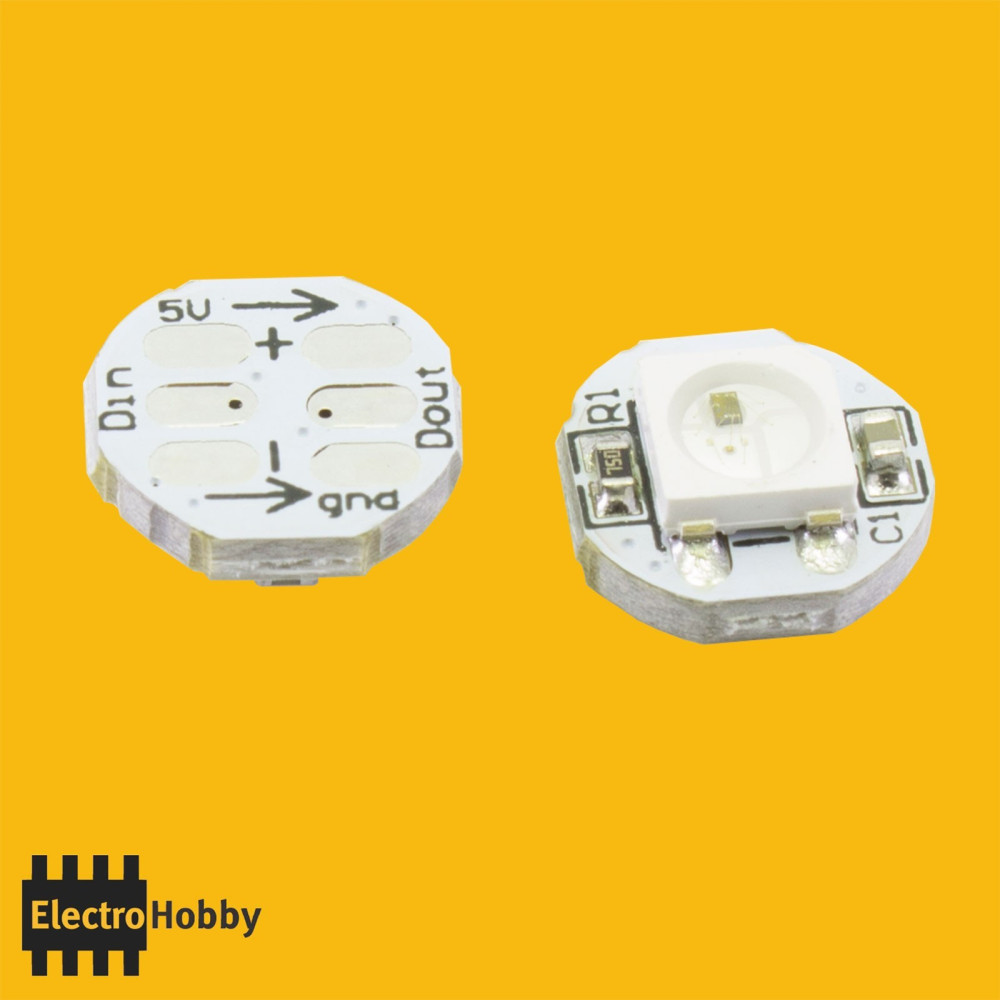 Con controlador integrado WS2812B que le permite controlar el color y el brillo independiente uno de otro permitiendo controlarlos mediante 1 solo hilo de comunicacion.